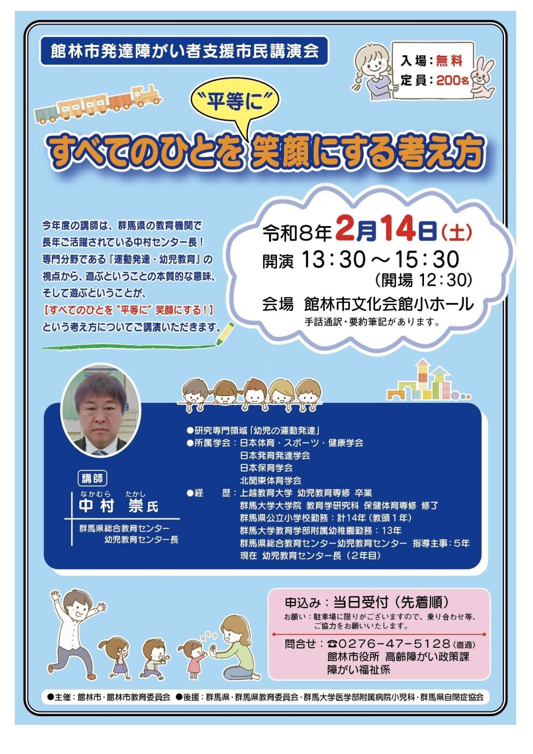 館林市発達障がい者支援市民講演会<2月14日(土)>